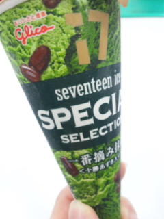 ちゃんと苦い抹茶アイスに大粒あずき!コーン内側にホワイトチョココーティングがあるのでコーンパリパリ!