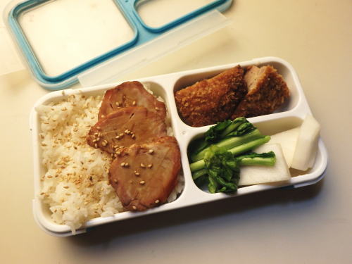 JUGEMテーマ:お弁当写真 いただきものの、焼豚と ミンチかつをお弁当につめました。 焼豚にはたれをまぶし、ごまをまぶし お野菜部分は浅漬けの素で漬けた カブとカブの葉っぱです。 フードマンにつめたお弁当ですが、 フードマンは仕切りがあるので、 品数が少なくても、ぴしっと 決まるなぁ!と思いました。 まだまだお弁当つめてるよ。^^ 「お弁当つめてみた。」 http://gorakku.moo.jp/bento/ サイトに遊びに来てね...