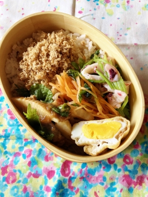 本日の弁当: ウルイとベーコン炒め → 人参の甘煮 → 菜の花からし和え → ごぼうとこんにゃくの山椒煮 → 玉子焼き 大葉 五穀米ごはん 【ウルイとベーコン炒め】 つくりかたは、こちら→ 祝日も、仕事がある日は弁当持参。 -- ひとのキモチを扱うシゴトがいちばん しんどいな。なだめすかして機嫌取り つつ、噛んでふくめるように諭しつつ。 ハラハラにももちろん気を付けまっせ。 それでも当人...