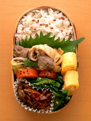 本日の弁当: ジンギスカン風の野菜炒め → 人参の甘煮 → 切干大根の酢漬け → ほうれん草おひたし 玉子焼き 大葉 白米+もち麦+赤米ごはん 【ジンギスカン風の野菜炒め】 つくりかたは、こちら→ 年始からマスクを二重に掛けて通勤して います。不織布の上に布マスク。最初は ふとした思いつきで、やってみたら顔が 温かくて寒いこの冬、意外と快適でした。 感染予防の効果はたいしたことないかと 思っていたら一...