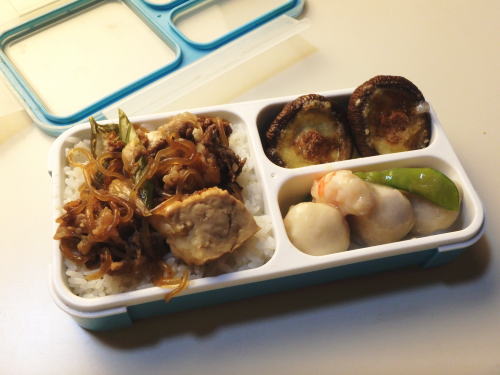 JUGEMテーマ:お弁当写真 うれしいうれしい「すき焼き弁当」! というわけで、職場でいただいたすき焼きを ゴハン部分に乗せてみました。 ほかにも、しいたけのバターガーリックや 里芋の煮しめ、 フードマンで作っている お弁当ですが、おいしかったです。 P.S. 本当は600mlのフードマンのお弁当箱でも、 作ってみたいのですが、(今は400ml) なかなか実行できません。 あわーくしてみたいなぁ!と 思っておこうと思います...