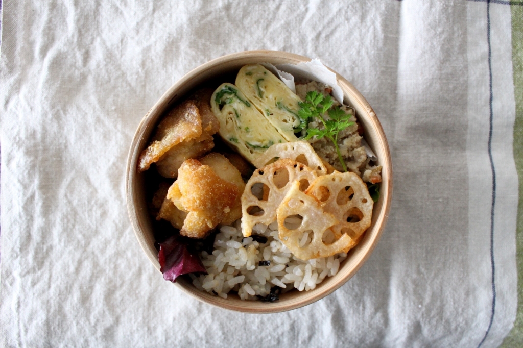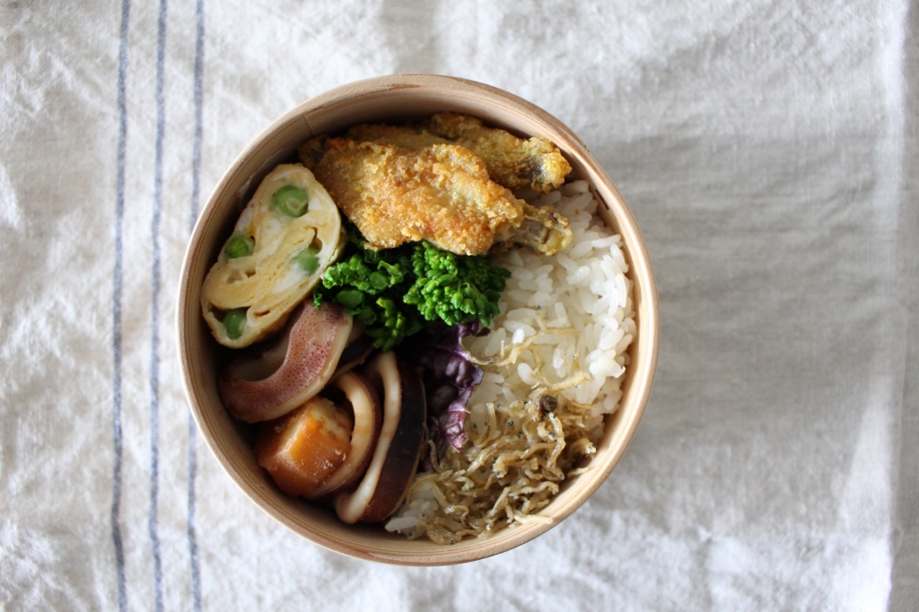 JUGEMテーマ:お弁当写真 さぁ 3月がスタート 春ですね〜 というわけで 3月は毎年恒例の春のお弁当レッスンです 今年はから揚げを入れてみました ボリュームありのお弁当 から揚げは ぴりりと花山椒をきかせて 薬味と一緒に揚げます 他春の食材をちりばめつつ メニューは こちら ・爽やかなトマトの炊き込みご飯に 旬のあおさを入れて ・椒麻醤から揚げ ・エリンギのポンマスタードバター ・新玉ねぎのさっとピクルス 生姜&レモン ・つぼみなのチーズ焼き(つぼみなは仕入れられないときも...