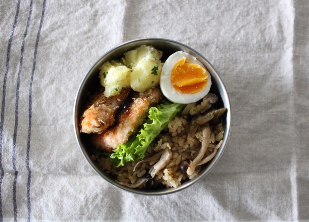 JUGEMテーマ:お弁当写真 今日のお弁当 きのこの炊き込みご飯 鮭のパン粉焼き 粉ふき芋 ゆで卵 胡瓜の粕漬け 。。。 雨になりましたね 今日は久しぶりに炊き込みご飯のお弁当にしました。最近ポテトサラダが飽きてきたので粉ふき芋を作ったんだけれど シンプルにお塩だけで食べる方がじゃが芋らしくて美味しいですね。キタアカリが甘くてホクホクでした。 にほんブログ村 人気ブログランキング