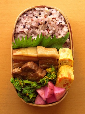 本日の弁当: 八角風味の煮豚 → 菜の花からし和え → かぶの梅酢漬け 人参入り玉子焼き 大葉 五穀米+白米ごはん 【八角風味の煮豚】 つくりかたは、こちら→ 紹興酒のコクがなんちゅうか本中華 でたまらんうまい。若いころ、実家 に帰省した際にコイツを作って親に 自慢してやろうと紹興酒一瓶買って 台所の棚に仕舞っておいたら、料理 に使うとは知らずに父が一晩で飲み 干してしまった(^^;)。 当時は怒りに任せ父をキツく叱っ...