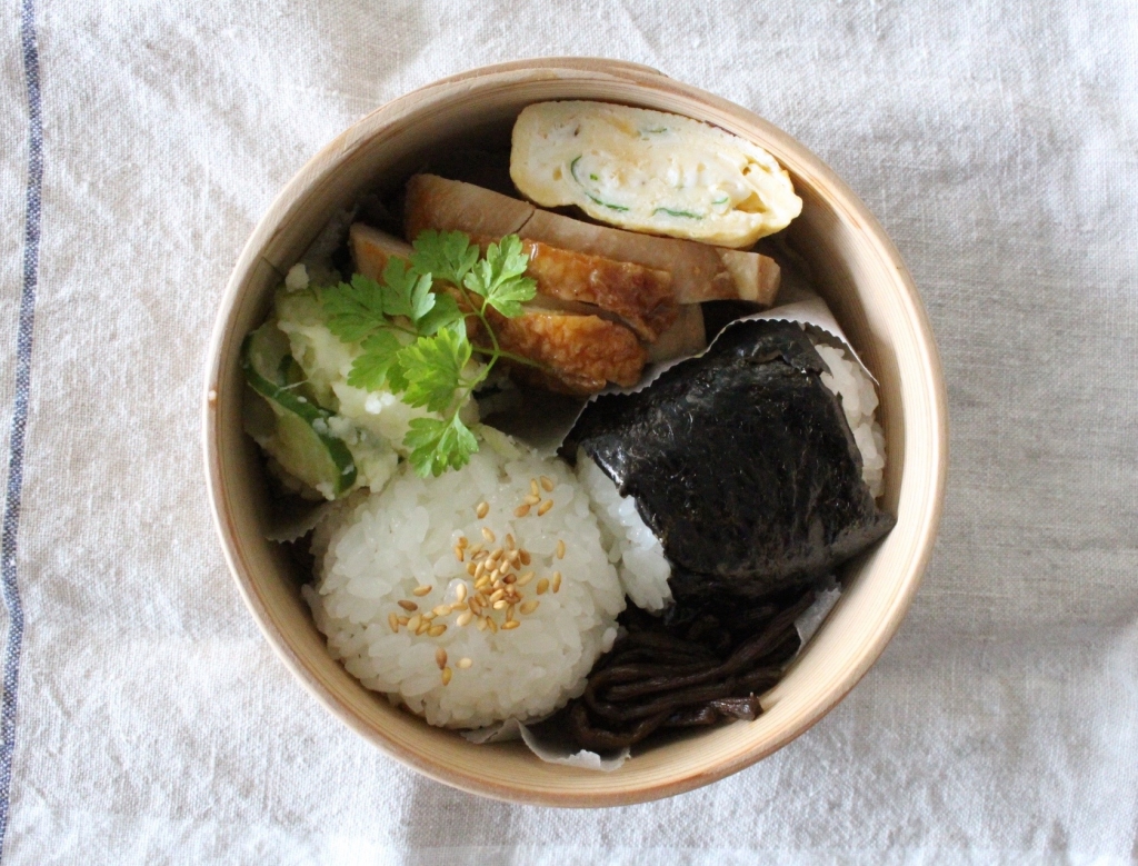 JUGEMテーマ:お弁当写真 今日のお弁当 今日も地味弁 梅のおにぎり ポテトサラダ 鶏の胸肉の照り焼き イタリアンパセリ入り卵焼き フキの佃煮 チャービル 。。。 新米を炊きました やっぱり 美味しい 。。炊き上がりのツヤ や香りもよく 粘りがありもちもちでした。新米の粘りのあるご飯は梅干しと一緒に食べると一段と美味しく感じますね にほんブログ村 人気ブログランキング
