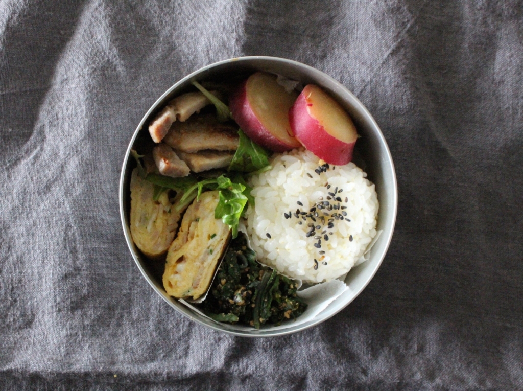 JUGEMテーマ:お弁当写真 今日のお弁当 梅塩おにぎり ハムとチャイブの卵焼き ほうれん草と菜花の胡麻和え 豚肉の味噌焼き さつまいものレモン煮 ベビーリーフ そういえばさつま芋のレモン煮を一度も作ってなかったと思って作りました。瀬戸内レモンと蜂蜜で味付けしてます。 。。。 菜種梅雨 広島は木曜日まで雨まじりの肌寒い日が続きそうですね。鼻は詰まってるしすっきりしないけれどあまり考えないようにしよう。。 にほんブログ村 人気ブログランキング
