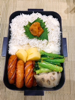 JUGEMテーマ:お弁当写真 今日も寒い!朝から実家の母が電話で、 あんたぁ、外に洗濯もん干しに出たら手が凍りそおやったゎぁ、、、 そおやんな、80才過ぎたカラダにはこたえるえるよなぁ、寒の戻りは(>_<) 昨日、お店の帰りにスーパーに行った店番さん。 買い物していてお財布がないのに気づいて、しょんぼり帰宅しました(T_T) なので冷蔵庫の中とにらめっこ。 常備してあるウインナーとお野菜で、なんとか詰めました! しらすと梅干しをごはんにのせて 京都丹後産こしひかり☆彡...