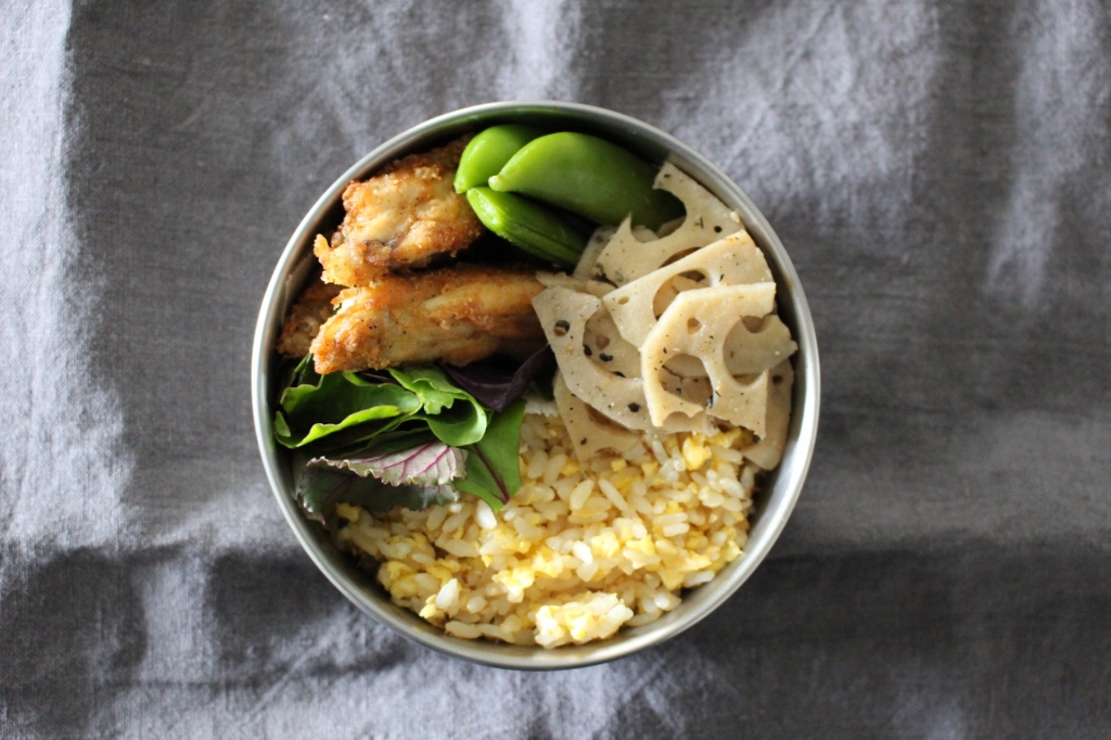 JUGEMテーマ:お弁当写真 今日のお弁当 にゃんにゃん卵まぜご飯 チキンのスパイス米粉揚げ はすの金平 ベビーリーフ スナップえんどう 。。 春の嵐で昨夜は雷と風がすごかったですね。0時を過ぎ 眠れない〜と思ってたら 朝になっていました。にゃんにゃん卵まぜご飯はご飯にお醤油 炒り卵 鰹節 白ごま お塩を入れ混ぜただけですがこれが卵チャーハンよりも美味しくて簡単です。最近健康のために毎日ゴマを食べるようにしています。なので金平にもゴマをたっぷり入れてます。。 ...