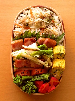 本日の弁当: ウルイとベーコン炒め → 菜の花からし和え → 人参の甘煮 → 二十日大根のレモンマリネ → パセリ入り玉子焼き 大葉 あさりと生姜の炊き込みご飯 【ウルイとベーコン炒め】 つくりかたは、こちら→ ウルイは炒め過ぎずに、ヌメしゃき。 毎年春待ち気分のこの時季限定食材。 やっぱうまいなあ。あさりと生姜の 炊き込みご飯も、ああ至福。 お弁当ブログのランキングに参加中〜。今日も応援クリック☆ありがとうご...