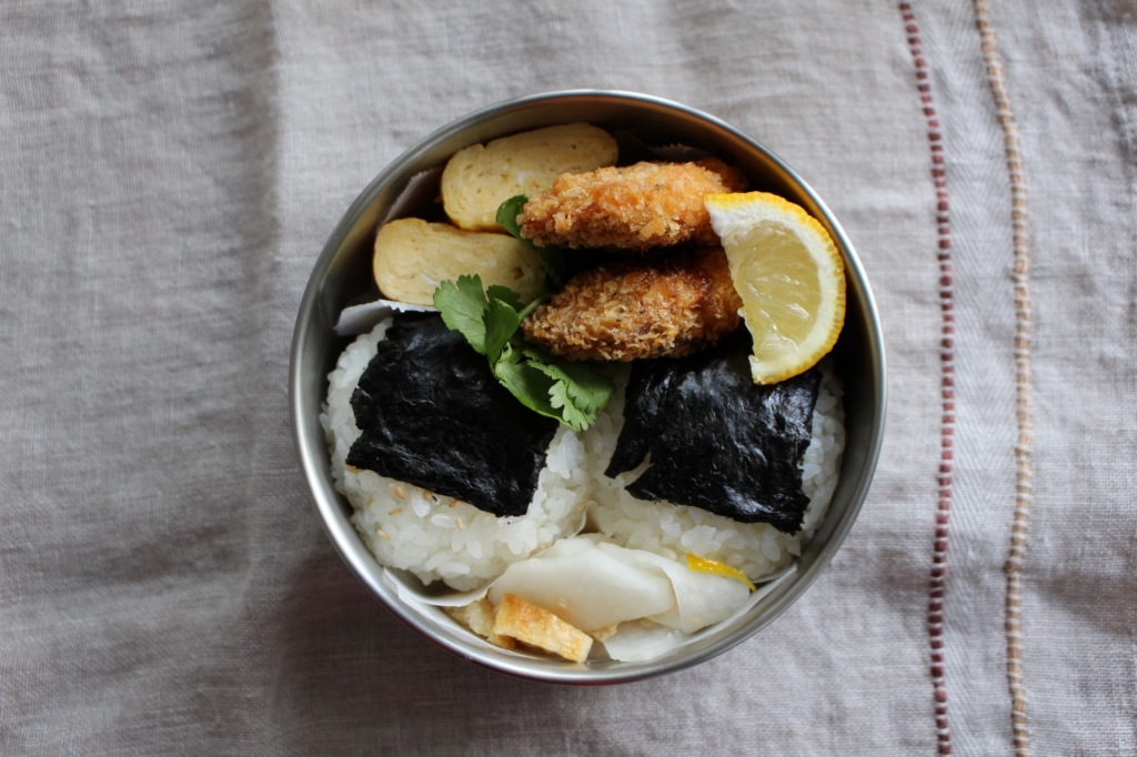 JUGEMテーマ:お弁当写真 今日のお弁当 山椒ちりめんと葉唐辛子の海苔おにぎり 鮭フライ 大根なます パクチー 卵焼き 。。。 今日も地味弁です。種無し柚子を買ったので柚子だけで作った酢の物が美味しいこと 柚子でちらし寿司も作りたいと思ってます。フライに添えてあるのが種無し柚子 ほんとうに種がまったくなく果汁がレモンよりも多いですよ にほんブログ村 人気ブログランキング
