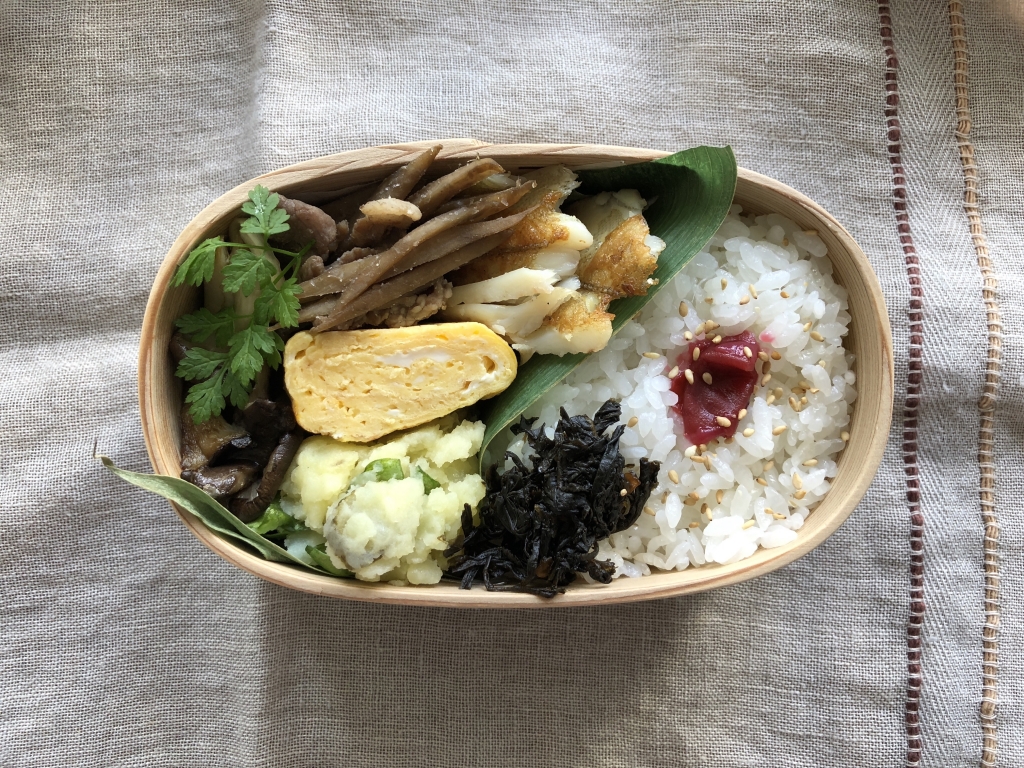 JUGEMテーマ:お弁当写真 今日のお弁当 白ごはん ポテトサラダ 卵焼き 牛蒡のきんぴら 霜降り平茸のオリーブオイル焼き カレイの干物 葉唐辛子の佃煮 梅干し チャービル お魚が苦手でお肉ばかり食べ 偏食気味なので 最近は魚をがんばって食べるようにしています。 ............................. にほんブログ村 人気ブログランキング