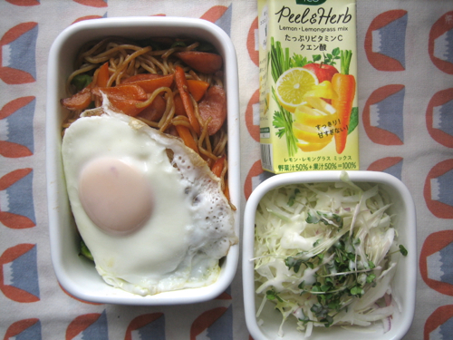8/8(火) ・焼きそば+目玉焼き ・玉ねぎとキャベツとスプラウトのサラダ ・たっぷりビタミンCクエン酸 東京くもり。 表題通り、焼きそばとサラダ。 高級にも目玉焼き付きで、ジュースをつけて、うん、完璧(`・ω・´)b ナイスリハビリ弁当(`・ω・´)b JUGEMテーマ:お弁当写真 昨晩久しぶりにヨガへgo. 現在の体の硬直具合にびっくりしてきました。 首回しさえ辛かった…Σ(゚∀゚ノ)ノ...