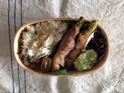 JUGEMテーマ:お弁当写真 今日のおべんとう 今日はアスパラの肉巻きを作っただけなんだけど 作りながらもっとあっさりしたものが食べたいなと思ったのです。夏ですね。ヒジキの煮物 ポテトサラダ ブロッコリースーパースプラウト 汐吹き昆布ご飯 キュウリの粕漬け 今日も地味弁。。平和大通りの蝉の声が心地いいです。。もう夏ですね にほんブログ村 人気ブログランキング
