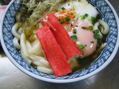 JUGEMテーマ:今日のランチは..... うどんにしました。 カニカマと、たまごが入っています。 とろろ昆布も。 スープは市販品を使いました。 ごちそうさまでした。