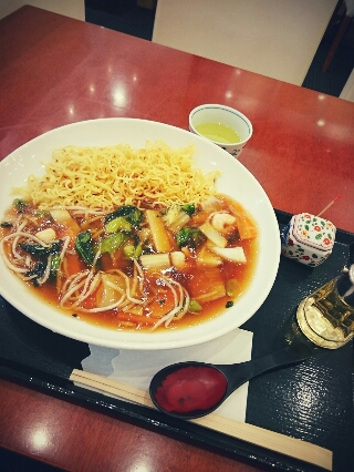 JUGEMテーマ:今日のランチは..... 今日のお昼はイオンの中の麻布茶房であんかけ焼きそばを食べました。 気持ち的にはお蕎麦が食べたかったのですが、気が付いたらこれ食べてました(笑) お野菜というかあんかけの分量が結構多いような気がしますが、さくっと食べれてしまいました。 お酢はたくさんかけて食べる方です☆ お昼なので定食的なものでもよかったな〜と今になって思います。 次に行くときはごはんものにしよう♪