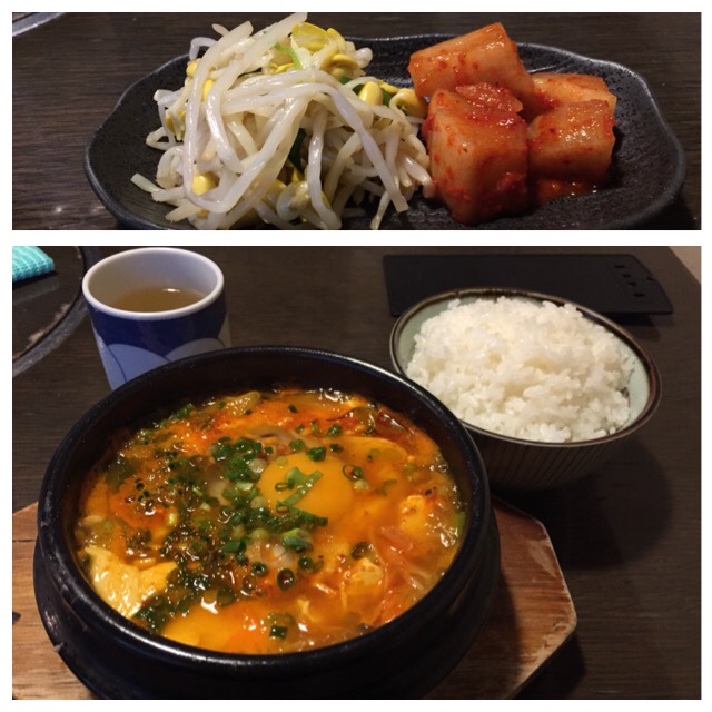 韓のこころ / 純豆腐チゲ 寒くなってきたので熱々で辛いものを食べたい! というわけで、韓国料理の出番です。 まず、もやしのナムルとカクテキがきます。 カクテキの辛さは抑え気味なので、辛いものが苦手な人にも食べやすいです。 純豆腐チゲはグツグツと煮えたぎった状態でテーブルに運ばれてきます。 激辛好きだから余計そう感じたのかもしれませんが、辛さよりも旨味に比重を置いた純豆腐チゲのように思います。 旨味が強い分、ご飯にはよく合いますね。ちなみに、ライスの大盛り・お代わりは自由となっています。 ...