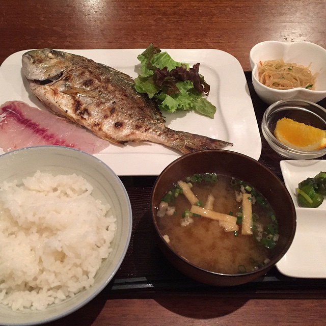 本日の鮮魚定食 1,000円 職場の人に「お魚が食べたい」とリクエストされて連れて行ったのが「さくらさくら」と言うお店。 鮮魚定食の魚は複数種類あり、実物を見ながら説明を受けて選びます。今回は「ヘダイ」にしました。 調理方法も選べて、塩焼き&刺身を半身ずつにするか、一匹丸ごとを煮付け・塩焼き・刺身にするかをリクエストすることが出来ます。 魚を食べたい時に特にオススメです!