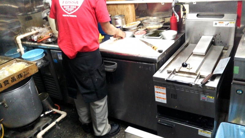 JUGEMテーマ:中華・ラーメンが好き!!! 前回 の続きです 厨房側から店主のバックショット 丸太のような塊肉を包丁で薄〜くスライスしている所でした ゴッツイ丸太チャーシューを薄く切っては元に戻し、また持ち上げて薄くスライス 『さすがにシンドいし、時間かかっちゃうから』と、スライサーをご検討中のようです (^^ゞ すぐに取り掛かって下さってオーダーから3分ほどで提供されました サービス...