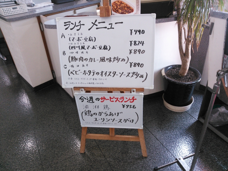 JUGEMテーマ:中華・ラーメンが好き!!! 毎度毎度、歳とるにつれて暑さに弱くなっている乾物屋の 凛 です〜 今回の記事は 中国料理 鴛鴦(やんやん) さんです♪ 店主H『凛さんアレ食べなよ、ザーサイのおそば』 凛『じゃあソレで』 凛『あ、陳麻婆豆腐のお弁当ってのもずっと気になってたんです』 店主H『じゃセットにしますか?』 って事でオーダー確定 ザーサイのおソバ + 陳麻婆豆腐弁当 立て看板 (開店前なので店...