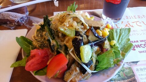 JUGEMテーマ:ハンバーグ シルバーウィークに ブロンコビリーに行ってきました。 シルバーウィークはゴールデンウィークと 違って普通のランチメニューやってました。 サラダバーは前回と同じ感じ で、ナスやズッキーニ、 ミョウガなどがたっぷり使ってあって どれも美味しかったです(^o^) いつもモリモリです(^0^;) メインは子供はそれぞれ ぶどう牛のステーキ150g ミックスグリル(400g) がんこハンバーグ(250g) 今日もとっても美味しかったです。 3人でお腹いっぱい食べ...