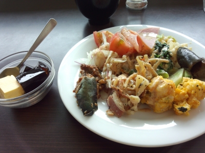 JUGEMテーマ:ハンバーグ今日もオガッシ食堂に行ってきました。目的はお得な商品券のうち、コーヒー券がまるまる残っていて、1枚300円換算で、モーニング470円のところ、プラス170円で食べられるので、モーニングに行くつもりでした。でも行ったら11時前でモーニングは10時半で終わりだそうで、ランチに変更しました。フリーペーパーの「call」にサラダ・カレー・ドリンクバー380円が半額になるクーポンが付いていたので、それを使いました。まずはサラダバーを取ってきました。サラダバーのメニューはこの間行っ...