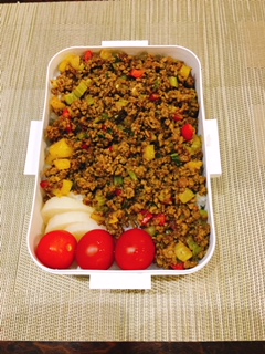JUGEMテーマ:男子中学生弁当 今日も寒いですね〜。 朝起きるのがとっても苦手な店番さんでございます。 きのうは、元祖店番さんの85歳のお誕生日でした。 商店さんと店番さん、娘と息子でサプライズお誕生日会をしましたょ(^^♪ 途中、100歳まであと8年やなぁ、、、という元祖店番さんのつぶやきに 計算おかしいやん('◇')ゞと大笑いしたり。。。 久しぶりに家族で穏やかな時間を過ごせました♪ 今日のお弁当はセロリとパプリカたっぷりの牛そぼろカレー丼! では、午後から...