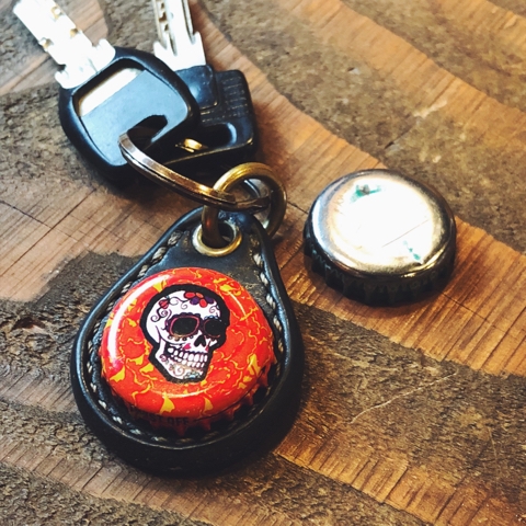 デザインの剥げてしまった王冠キーホルダーの交換修理です。 ベースの牛革部分はそのまま再利用し、ボトルキャップのみを新しくしました。お得にリニューアルできるのでオススメです。 ・ビアボトルキャップキーリング / デイオブザデッド(BEER BOTTLE CAP KEY RING / DAY OF THE DEAD) ※工房へキーホルダーを持って来てもらうか、送っていただく必要がありますが、アジのでたレザー部分をそのまま利用し再加工させていただきます。取り付けるボトルキャップの種類にもよりますが、新規...