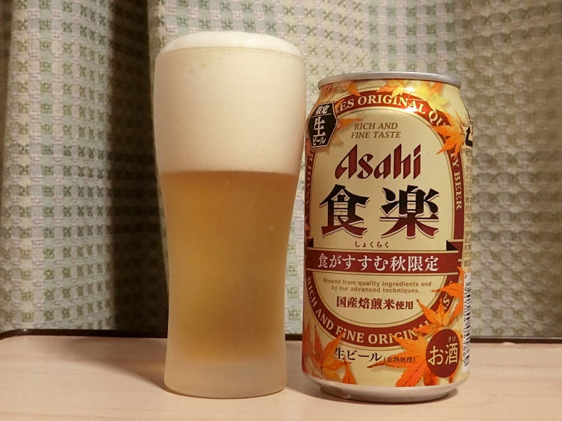 JUGEMテーマ:ビール アサヒビールから秋限定で発売された食楽にトライしてみた。 アサヒビールHPによると、、 食がすすむ秋にふさわしい限定醸造生ビール。食事の味に負けずに調和するしっかりしたコクがありながら、新たに採用した「国産焙煎米」による香ばしい薫りと、これまでのビールには無い喉の奥にピリっとくる心地よい刺激によってより食が楽しめる、食欲の秋ならではのビールです。 ...
