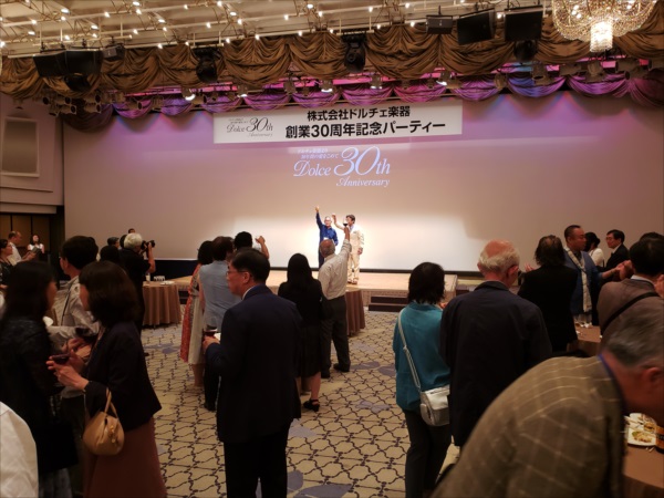 今日は新宿にあるドルチェ楽器さんの創業30周年パーティーへお邪魔してきました。奥手な私は( ̄。 ̄;)このような晴れがましい場が苦手で今まで顔を出すことは無かったのですが、今回誰かに会えるかな、と出かけたのでありました。会場の京王プラザの宴会場は広く、上記写真はこの宴会場の1/3ほどのスペースです。 知り合いに会えるかどうかドキドキしながら会場入り、、、早速に大学(国立音楽大学)の先輩後輩を見つけてホッとしたのでありました(^o^) 新星〜東フィルのフルート奏者として活躍された同門(木下芳丸先生...