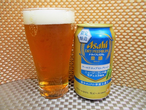 アサヒ ドライプレミアム 豊醸 ワールドホップセレクション 【限定醸造】 希少ホップの華麗な薫り 世界生産量1%未満の希少ホップ「ニュージーランド産モチュエカ」を使用して 限定醸造した、特別なドライプレミアムです。 2017年6月13日(火)に発売。 JUGEMテーマ:ビール