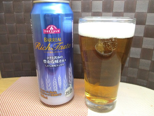TOPVALU BARREAL リッチテイスト コクと苦みの豊かな味わい 原産国 韓国 韓国産発泡酒。 とにかく安い。ロング缶で110円だからね。 味も別段問題ない。フツーに美味しい。 JUGEMテーマ:ビール