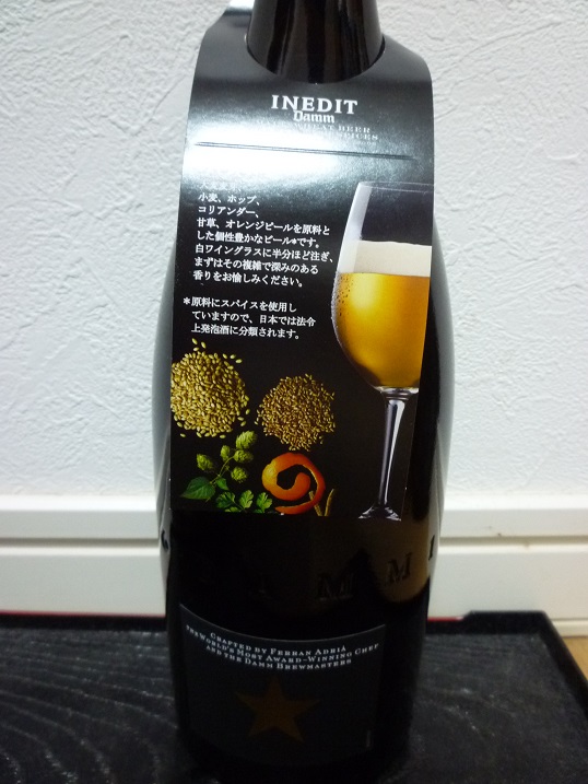 JUGEMテーマ:ビール 先日買った「ワイン&ビール福袋」の1本、スーパープレミアムビールの「イネディット」を、早速開けてみました。 世界一と言われていたレストラン「エル・ブジ」(現在は閉店?)の料理長がビールメーカーと共同で開発したビールだそうです。 もちろん行ったことはないですが、一生に一度は行ってみたいと思っていた「エル・ブジ」(行けないままに閉店しちゃいましたが)が造ったビールと聞き、ものすごく期待して開けました。 普通のビールの原料に、オレンジピー...