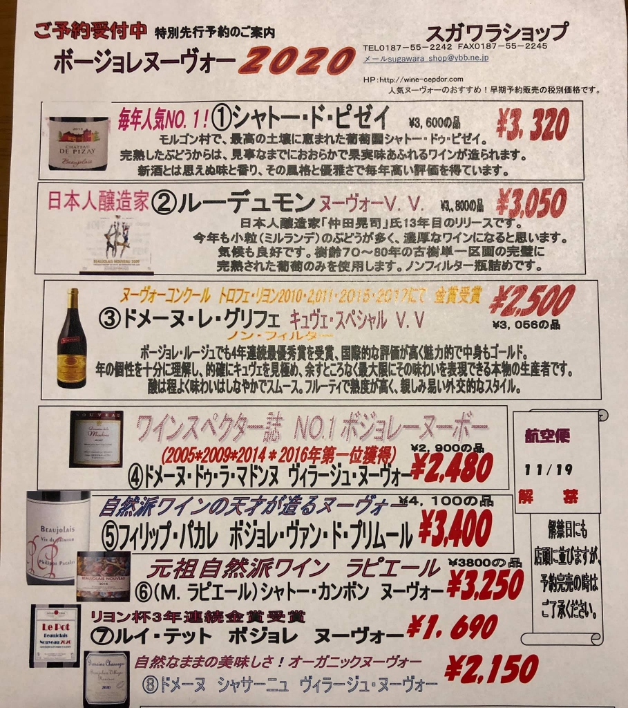 もう10月になって5日もたってしまった、しまったしまった^^ 秋田駒ヶ岳ももう紅葉がかなり進んでいるみたいだし・・ 行きたいところもやりたいこともたくさんある・・ 1日1日大事に過ごさねば〜 ことしもいいみたい! ボージョレヌーヴォ2020のご案内でございます! 数に限りがあるので、お早めに! ご予約すると大変おとくになっております 連絡お待ちしております