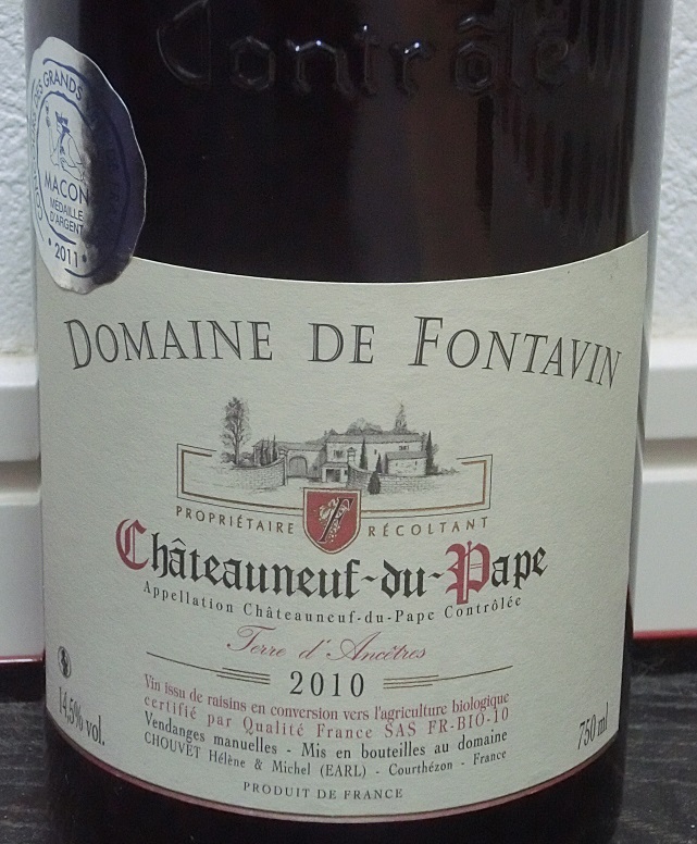 JUGEMテーマ:ワイン 今日のワインは、 南ローヌのヌフ・パプ ドメーヌ・ド・フォンタヴァン シャトーヌフ・デュ・パプ テール・ダンセトル 2010 久しぶりの南ローヌ、それもコート・デュ・ローヌクラスではなく、ヌフパプです。 と言っても、3千円程でヌフパプとしてはお安いワインです。 それでも、南ローヌのグレート・ヴィンテージである2010年産、 ワイン・アドヴォケート誌によると、 評価:92+ 飲み頃:2015-2030年 となっています。 セパ...