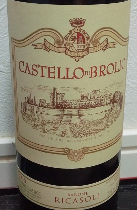 JUGEMテーマ:ワイン 今日のワインは、 トスカーナ・キャンティの名門バローネ・リカーゾリの カステッロ・ディ・ブローリオ 2006 トスカーナのワイナリーで、わたしがよく飲むのは、サン・ジュスト・ア・レンテナーノ、フォントディ、トゥア・リータがTOP3ですが、バローネ・リカーゾリはその次くらいでしょうか。 この「カステッロ・ディ・ブローリ」はまだ3本目ですが、ロッカグイッチャルダ、カザルフェッロなどを飲んでいます。 「カステッロ・ディ・ブローリ」...