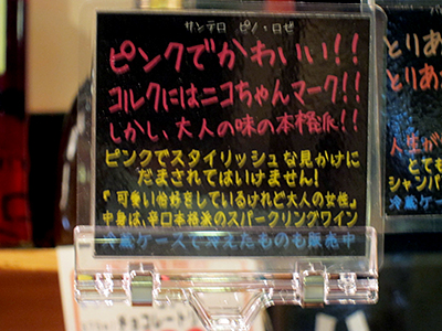 ピンクでかわいい!! コルクにはニコちゃんマーク!! しかし、大人の味の本格派!! ピンクでスタイリッシュな見かけにだまされてはいけません! 「可愛いくてオシャレな、しっかりした大人の女性」 中身は、辛口本格派のスパークリングワイン ピンクでスタイリッシュなボトルがとってもオシャレです。 コルクには、ニコちゃんマークも入っています。 女性が好みそうな、かわいいデザインなので、甘口かと思ってしまいますが、 ロゼの辛口スパークリングワインです。 外見の可愛らしさに騙さ...