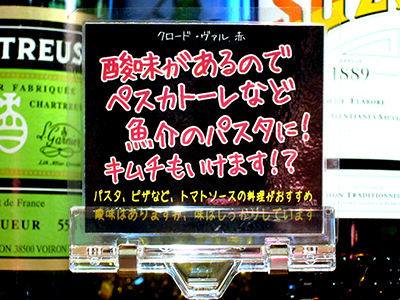 酸味があるので、ペスカトーレなど魚介のパスタに! キムチもいけます!? パスタ、ピザなど、トマトソースの料理がおすすめ 酸味はありますが、味はしっかりしています。 クロード・ヴァル赤は南仏の豊かな気候を表現した赤ワイン。 フルーティなアロマと豊かな果実の味わい、軽快な口当たりが心地良くカジュアルなシーンにぴったりです。 原産国:フランス 地方:ラングドック&ルーション 原産地呼称:I.G.Pペイ・ドック 品種:グルナッシュ50%/カリニャン25%/シラー15%/メルロー10% ...