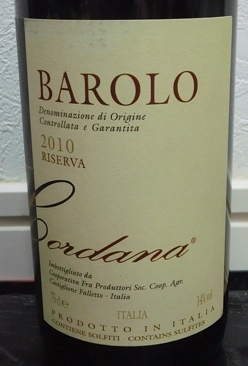 JUGEMテーマ:ワイン 今日のワインは、 イタリア・ピエモンテの、 コーペラティヴァ・フラ・プロデュットーリという生産者協同組合が造る バローロ・リゼルヴァ コルダーナ 2010 バローロの、しかもリゼルヴァで3千円台という驚きのお値段です。 さらに84か月以上の長期熟成を経てリリースされたものです。 2010年ヴィンテージなので、今で9年半の熟成という事になりますね。 ネッビ...