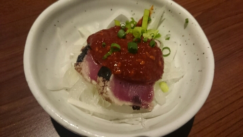 JUGEMテーマ:居酒屋夕方、狸小路にある炭おやじへ行き、忘年会を。 ジョッキビアを注文してぷふぁーっ!と\(゚∇゚)/〜♪たちポン、厚岸産3年もの生ガキ、月見つくねを注文。 千歳鶴の蔵元直送「吟風生酒」も注文。 もちベーコン、コーヒー酎、チーズ揚げ天もいただきました。