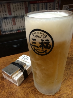 気になっていたけど、なかなか行けずじまいだった 池袋北口にある やきとん「三福」 ラーメン有名店の屯ちんの隣にあります。 いままでなぜ行けなかったというと、二階建ての居酒屋ですが、 「おニ階テーブル席」とでかでかと書かれた看板があり、 勝手にお一人様じゃ入りづらいお店なのかなと思っちゃったんです。 意を決して暖簾をくぐります。 1階はカウンター席と奥(裏口玄関側)にテーブル席でした。 カウンターは賑やかに混んでいます。 キンキンに冷えたジョッキビールで乾杯。 三福は看板にもなっているように...