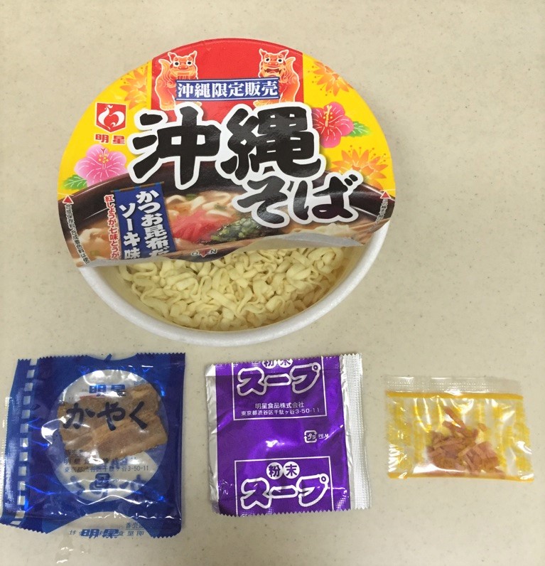 JUGEMテーマ:食しました。 とうとう食べてもうた。沖縄で「沖縄限定」というキャッチコピーに負けホテル内ショップで買った沖縄そばカップ麺。3カ月ずっと机の上に置いて いつ食べたろか悩んでいた挙句、3/30(木)全く意味の無い日に食べてやった。その結果は下記の通り。 ?価格 :200円(くらい) ?スープ:なんとなく沖縄そばの味になってる。 ?麺 :よくあるカップうどんと同じ麺ですがちじれ具合が偶然に沖縄そばの雰囲気をかもしだしている。 (日清どん兵衛のような生麺に近いハイクォリ...