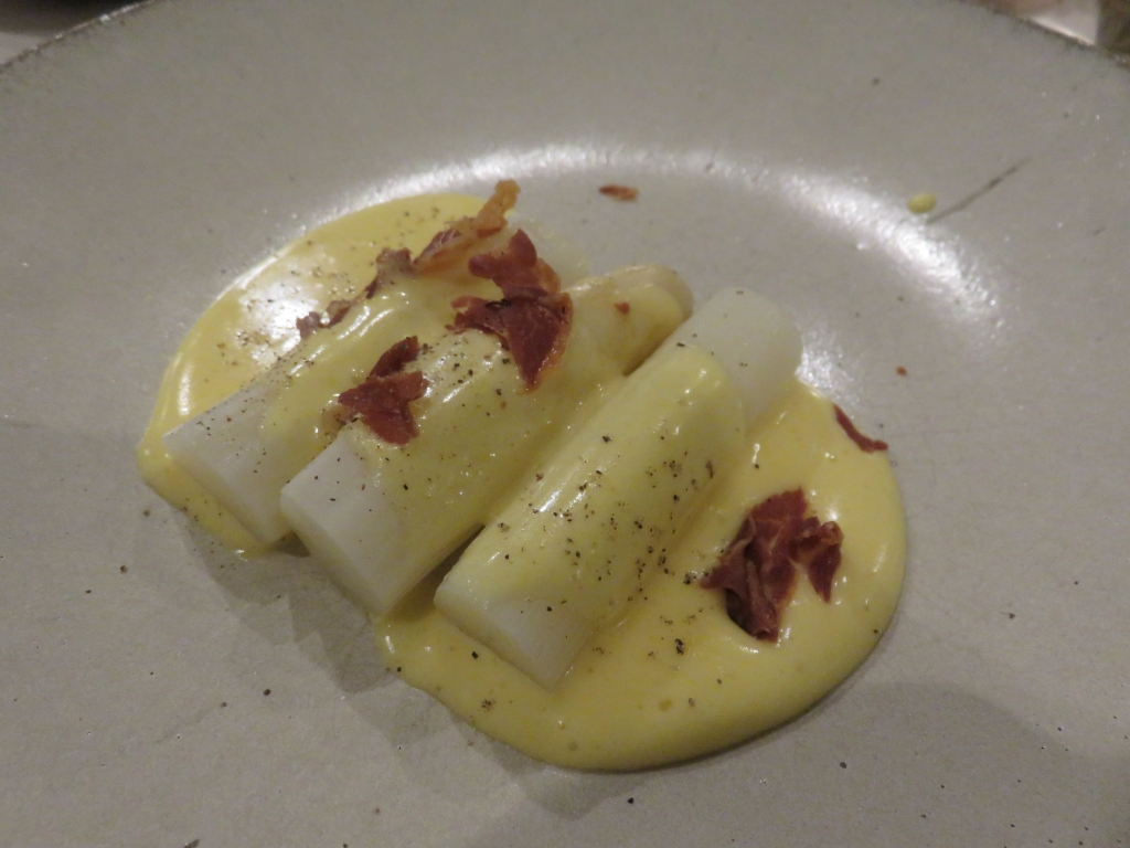 極太のアスペルジュ・ブラン入荷してます。 ソース・オランデーズと蝦夷鹿の生ハムを散らして・・・ JUGEMテーマ:バー情報