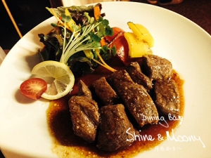 いつもありがとうございます、月あかりです。 今日は、お料理の紹介です。 「熟成牛のサイコロステーキ」です こちらは、なんとなんと約50日間も 熟成させた甘味のある脂肪と赤みのあるお肉を使用しています そのため、柔らかいお肉に仕上がっています。 ソースとの相性も良いので、しっとりと頂けます。 ぜひ一度、ご賞味ください。 こちらと合わせて飲むおすすめのお酒は、「XYZ no.5」です! 本来、終盤で飲むっていうお酒なんですけどね、途中でも良いですよね! ラムベースで、強いけ...