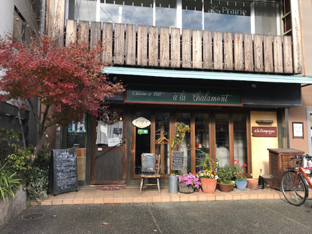 狛犬の代わりに狛猪が置かれている護王神社。 亥年の正月前後は参拝客が賑わう。 年賀状用の写真を撮りに行ったら、同じ事を考えている人だらけだった・・・。 護王神社の北側、下長者町通りにあるフレンチレストラン『ア・ラ・シャラモン a la Chalamont』。 入り口前に段差が1つ。これ以外は問題無し、 ヨーロッパの田舎風な内装。 ランチメニュー 黒板手書きのメニュー。 ランチ¥1,680-は、サ...