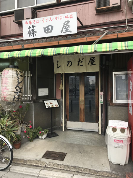 京阪電車「三条」駅・地下鉄東西線「三条京阪」駅から地上に出た時、あるいはその逆、三条通りの向かい側に見える『篠田屋』。 何度も店から50メートル圏内を通っているのに、いつも「そのうち」「そのうち」と前を通り過ぎておりました。 うどん屋だけど“中華そば”が評判。そして“皿盛”という人気メニューがある。 歩道との境界線に段差があるものの、入り口ドアまでに間隔があるので、車椅子の方向変換がやりやすい。 ドアが両開き...