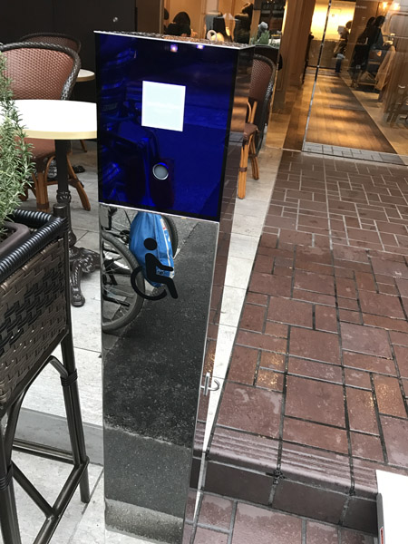 『ジャンポール・エヴァン 京都店』の店先には車椅子泣かせな約10数センチメートルの段差があった。 “三条通りは人通りが多いから、誰か捕まえて(段差越えを)手伝ってもらおう・・・” と思ったところ、店先の段差の脇に車椅子マークとインターホンらしきものを見つけた。 インターホンを押す必要もなく、店員がやって来て、備え置きの折りたたみスロープを運んで来た。 石段、玉砂利、飛び石など車椅子泣かせな飲食店が多い京都。 ...