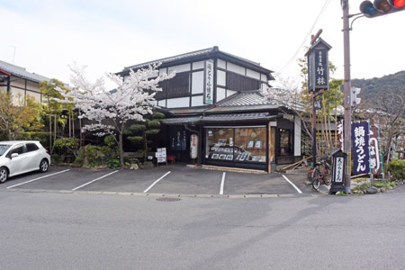 広沢池の桜を見て、そのあとは奥嵯峨を散策。大覚寺近くで遅めの昼御飯を食べられるところを探す。 このあたりは事前情報があまり無い。 清滝へ続くバス道へ出ると3軒飲食店を見つける。 1軒目は休み。2軒目は客の車が入り口をふさがれ車椅子が入れない。自動的に3軒目を選択。 店は京都バス大覚寺道バス停のすぐ近く。 そんなに広くはないが車椅子で入れる広さ。 うどん・そばの軽食メニューもあるが、嵯峨まで来てのランチだし、湯豆腐膳を注文。 ごま豆腐 湯豆腐 上に見え...