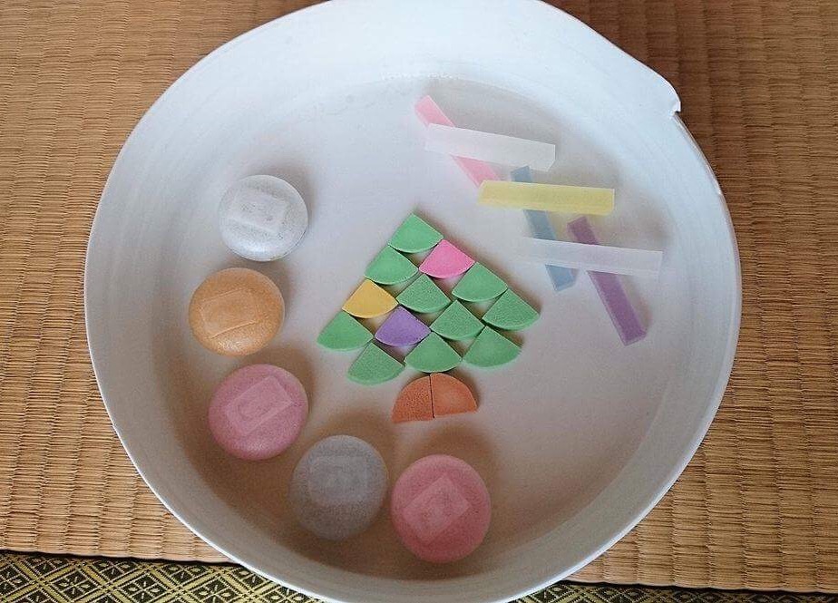 JUGEMテーマ:茶道 JUGEMテーマ:和菓子が好き まんなかのツリーは京都UCHUの「クリスマスモザイク落雁」。 左は「IROMONAKA」、右はハーブ味の「琥珀」、ともに鶴屋吉信TOKYO MISE。 先生がクリスマスに用意してあったツリー落雁に、生徒さんの東京土産が偶然ぴたりとあった形です。お茶ってこういうところが面白い。 生まれたてふわっふわの赤ちゃんをお祝いするような、甘く可愛らしいお干菓子の一皿になりました。 イエス様も喜んでくださりそう。 ...