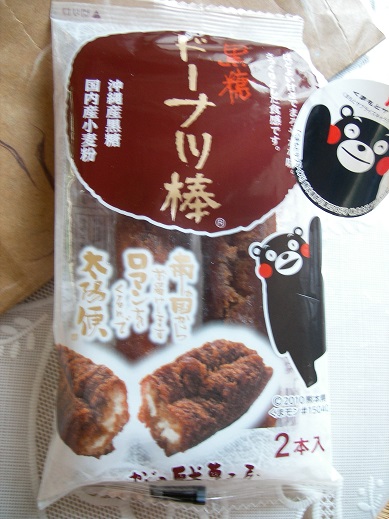 ひとこと: サクサク&やわらかドーナツ☆ 沖縄産の黒糖でヘルシー! ↑くまモンのスイーツ!後をひくおいしさ。 熊本に住んでいる友人が、東京に来たので、 くまモンのお菓子の黒糖ドーナツ棒をおすそ分けしてくれました。 くまモンは大人気ですね。 その人気に劣らず、黒糖ドーナツ棒がすごく美味しかったです!