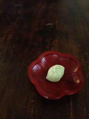 シャープな造形とこってりとした根来塗のコンビネーションが秀逸な原清さんの梅皿に鶯餅を。 JUGEMテーマ:漆器 JUGEMテーマ:和菓子が好き